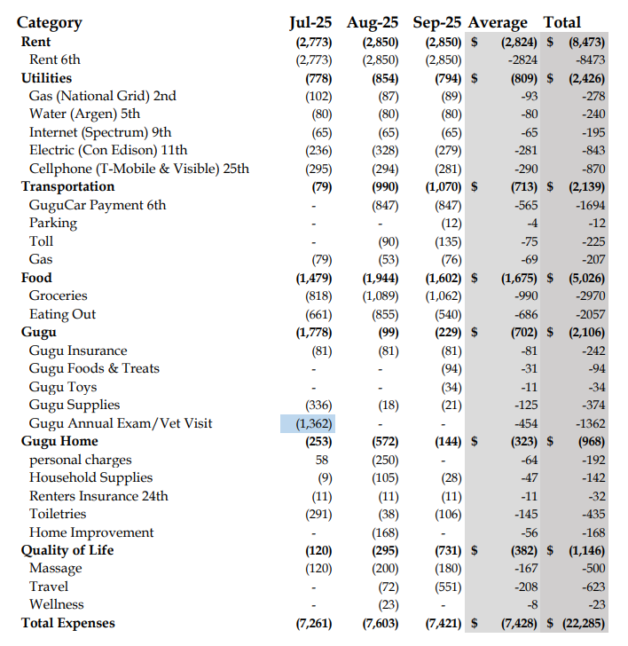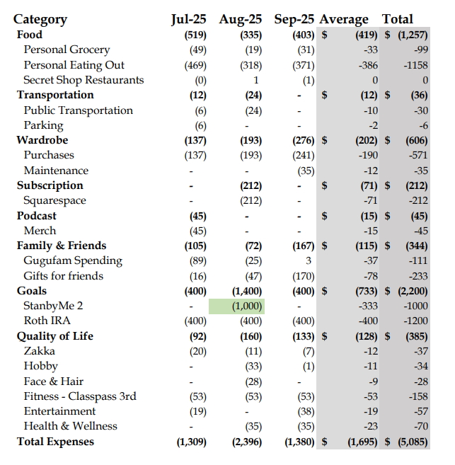 Q3 2025 Expenses | 2025年第三季度消费总结